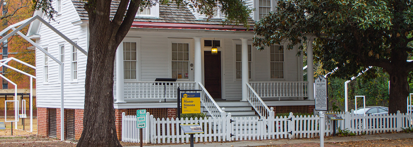 While only one house stands today, the Mann-Simons Site historically was a collection of commercial and domestic spaces owned and operated by the same African American family from at least 1843 until 1970. Midwife Celia Mann and boatman Ben Delane made this site their home by the early 1840s. Members of Columbia’s small population of free people of color, the couple challenged social norms at a time in which most Africans and African Americans were enslaved. Successive generations of their family negotiated the eras in which the capital city evolved from Jim Crow into the Civil Rights movement of the 1960s. Threat of demolition in 1970 galvanized a grassroots movement that saved the remaining structure, which opened as a house museum in 1978.